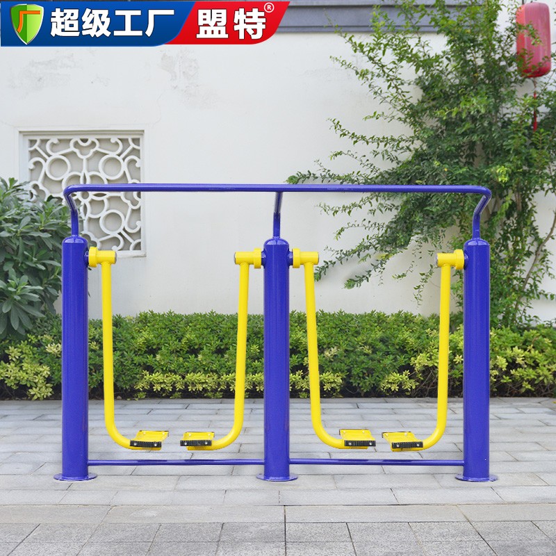 产品名称:太空漫步机(三联) 外形尺寸:3144mmx 522mm x 1309mm 主要功能:提高下肢协调能力和柔韧性,锻炼腿部肌肉力量,增强心肺功能。促进呼吸系统的健康;既锻炼身体又愉悦身心。适合青壮年和老年人群练习。 健身路径系列产品颜色分为红黄搭配、蓝黄搭配、绿黄搭配、红白搭配、绿白搭配等。如有颜色要求的客户可提前说明,可定制 使用材料:公司选用优质国标钢材,严格按照国家体育用品质量检测中心规定的材质要求生产加工。立柱采用?114mm,壁厚为3.0mm钢管(管材质量均符合BS1387-1985标准要求,技术标准符合BS1387-1985要求),铁件采用?60mm、?48mm、?38mm、?32mm、?28mm,壁厚为2.75mm钢管(管材质量均符合BS1387-1985标准要求,技术标准符合BS1387-1985要求). 工艺制作:公司全部采用先进的二氧化碳保护焊,焊接强度较普通焊接更高,确保焊接部位的坚固性及美观性。 抛丸除锈,既除锈又能增加了器材的表面积,为加强了后续喷塑工序的吸附能力奠定了基础,这是酸洗除锈不可比拟的优势。静电喷塑,先进的静电喷塑设备采用环保塑粉,对器材表面进行喷塑处理。